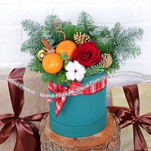 Праздничная шкатулка - корзина с фруктами и конфетами