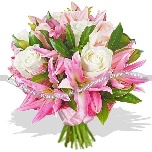 С любовью и нежностью - букет из кустовых хризантем, роз и альстромерий