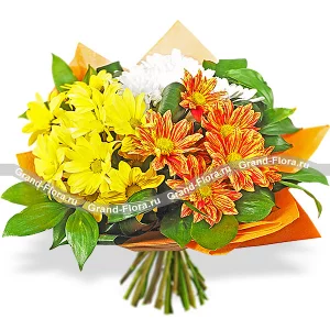 Солнечные блики - букет из разноцветных кустовых хризантем