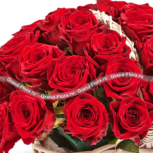 33 розы: роза красная - 33 шт., оазис, корзина.