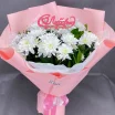 15 хризантем:  хризантема кустовая белая - 15 шт., рускус, упаковка, бант. Декор сердечко (может быть видоизменен)
